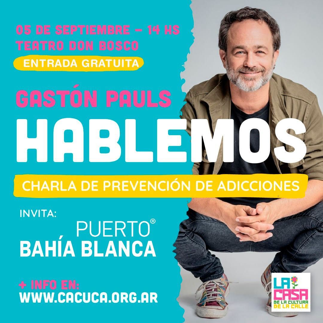 El próximo martes, 5 de septiembre, el actor y conductor Gastón Pauls va a dar una charla sobre adicciones en Bahía.