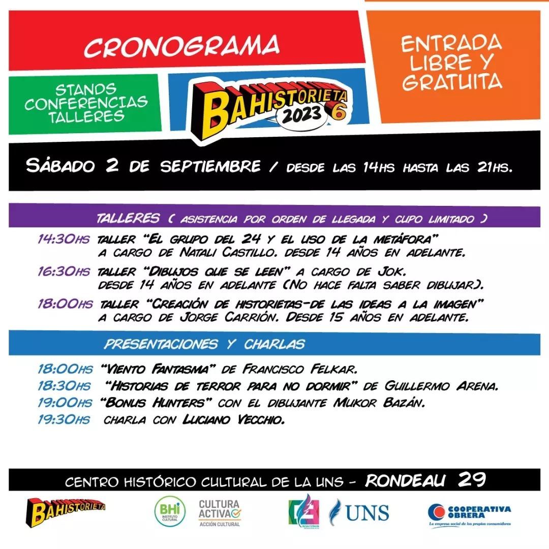 Desde las 14:30 en el Centro Cultural de la Universidad del Sur, en Rondeau 29, Bahistorieta.