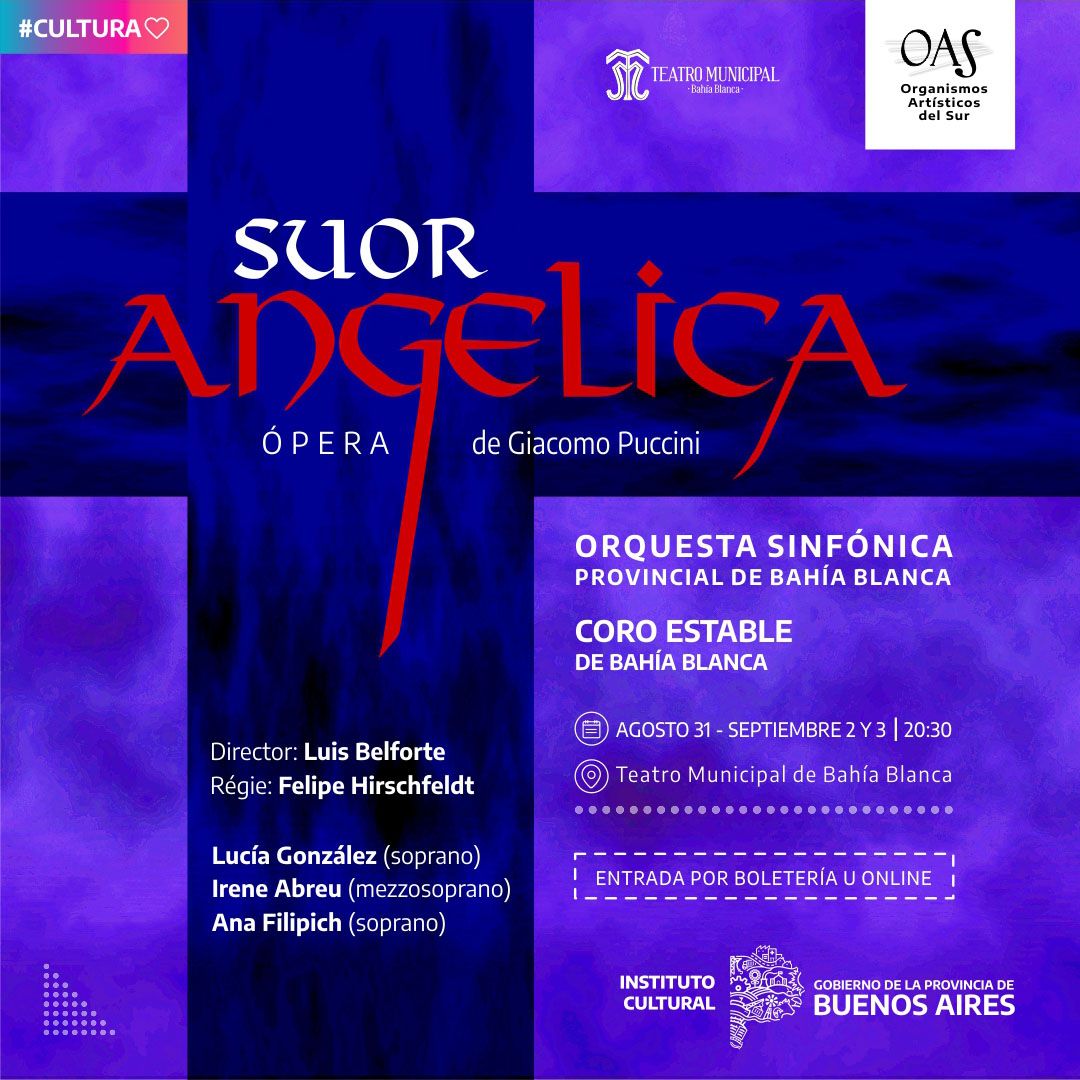 Encarnada por la solista invitada Lucía González, con la dirección del maestro titular de la Sinfónica, Luis Belforte y Felipe Hirschfeldt como regisseur. Zia Principessa será Irene Abreu. Badessa estará en la piel de Jihan Jerez Avalos, mientras que Genovieffa será interpretada por Ana Filipich. Zelatrice llegará con la voz de Luisa Reimers, mientras que Maestra será Valeria Mangano y la Infermiera Carolina Kincaide. Dolcina será personificada por Julia Abad, la Novizia por Margarita Itten y Myrna Serenelli y Leticia Ledo serán las Cercatris. Ximena Tassara y Luján Scaioli interpretarán a las Conversas y Julia Abad a Osmina.
