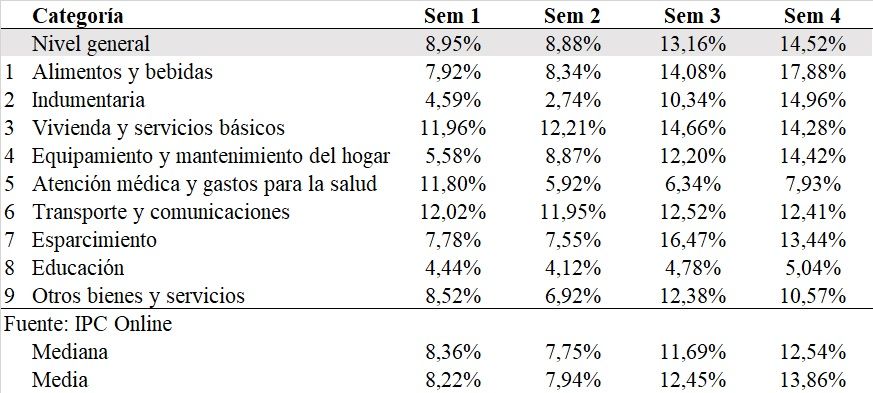 “En principio, la incertidumbre generada por los resultados electorales marcó la primera semana, desencadenando ajustes significativos en las listas de precios, un fenómeno que se considera bastante común en estas circunstancias. La tercera semana, sin embargo, añadió subas debido al traslado inmediato a precios de la devaluación del dólar oficial de más del 20%. Es la primera vez que el nivel general del IPC Online alcanza la preocupante cifra de dos dígitos”, explicaron.