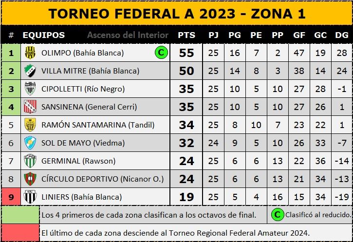 Olimpo, Villa Mitre y Sansinena están en zona de clasificación, mientras que Liniers está último y yéndose al descenso.