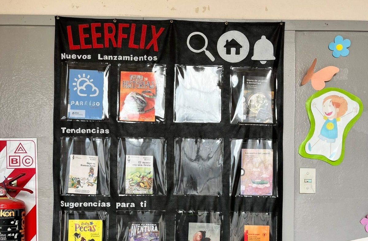 Una idea fue la que tuvo la bibliotecaria de la Escuela N° 3 “Bernardino Rivadavia”, de Terrada 446, de crear un panel rotativo llamado Leerflix, jugando con el nombre de la plataforma de películas y series Netflix.