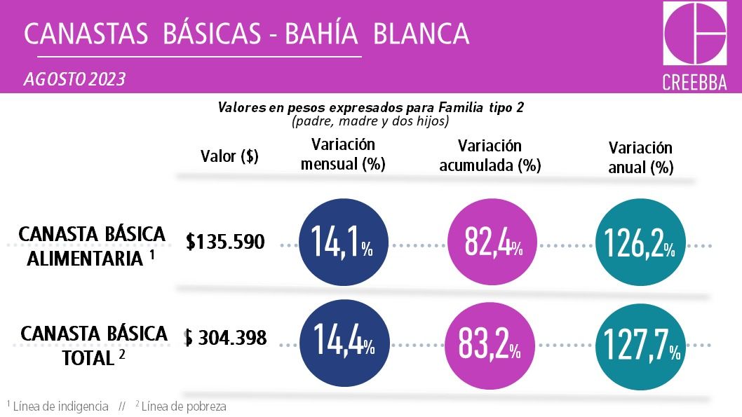 Una familia bahiense compuesta por un matrimonio y dos hijos en edad escolar, necesitó en agosto $ 304.398 para no quedar bajo la línea de pobreza.