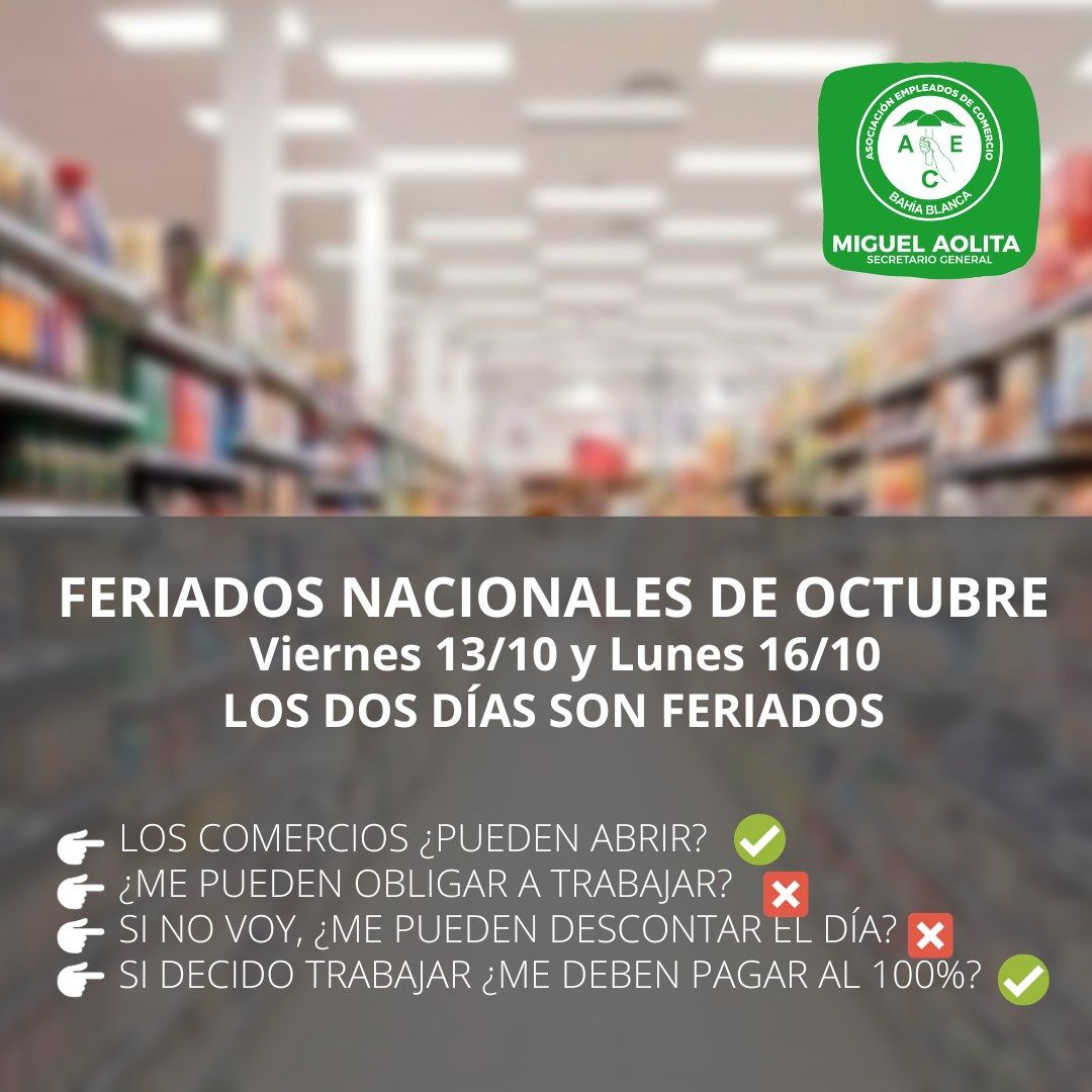 Ambos días serán feriados nacionales, por lo que los empleados de comercio no están obligados a ir a trabajar.