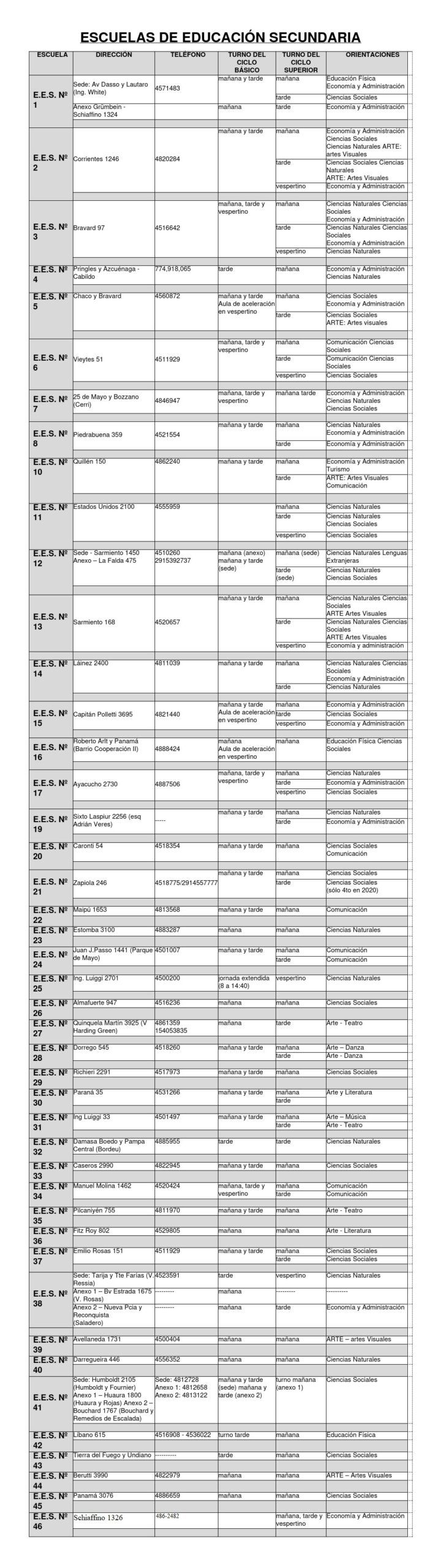 A estas se agregan las Escuelas Técnicas:
