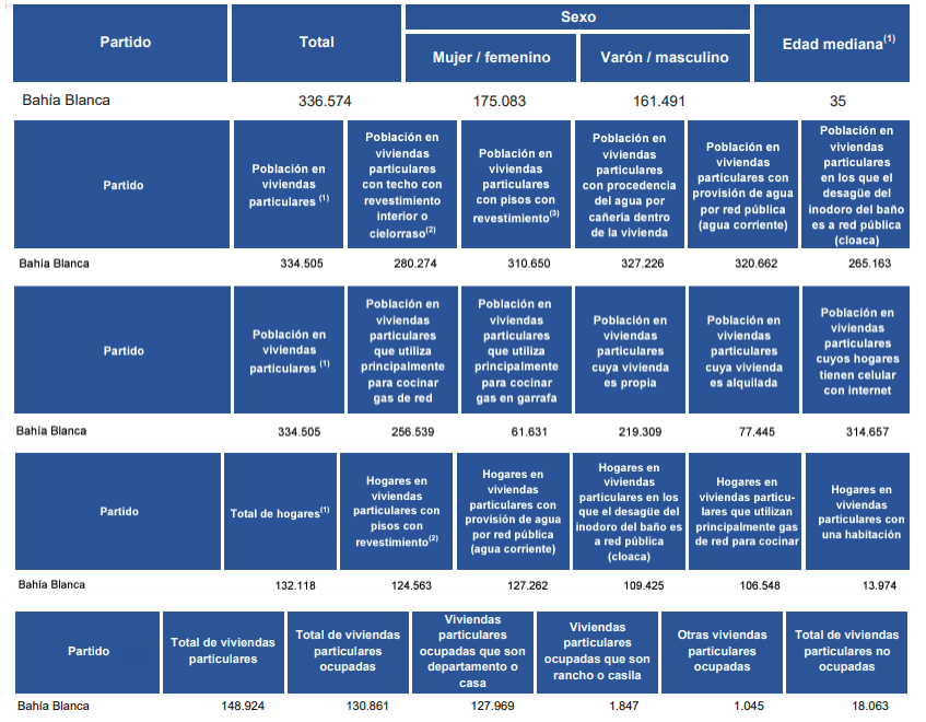 En Bahía, se registraron 336.574, de los cuales 175.083 se contabilizaron como mujeres y 161.491 como hombres. La edad con mayor cantidad de vecinos fue los 35 años.