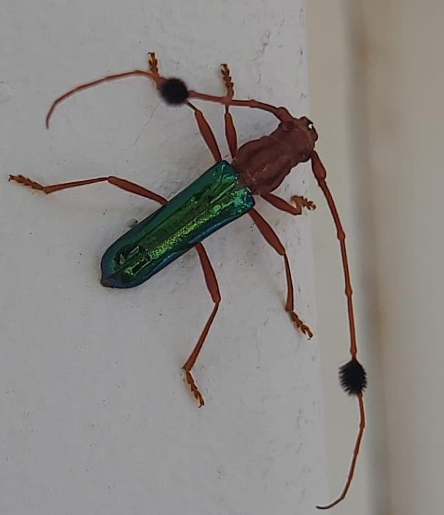 Escarabajo, de la familia cerambycidae, es nativo de América del Sur, muy común en el sur de Brasil, este de Paraguay, centro y norte de Argentina y en Uruguay.