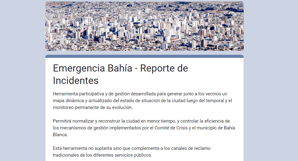 Para realizar reportes, visitá emergenciabahia.com.ar y contribuya a construir una ciudad más resiliente.