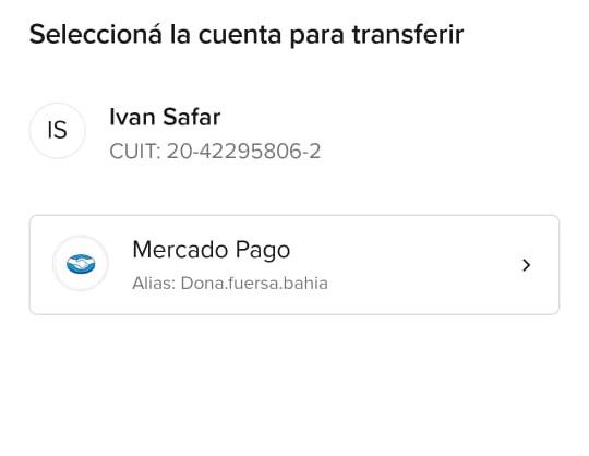 En Wips probamos hacer la transferencia y está a nombre de Iván Safar, bahiense, estudiante y cuyo cuit es 20-42295806-2.