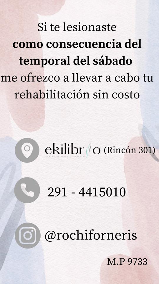 Rocío ofrece kinesiología sin costo para los lesionados por el temporal