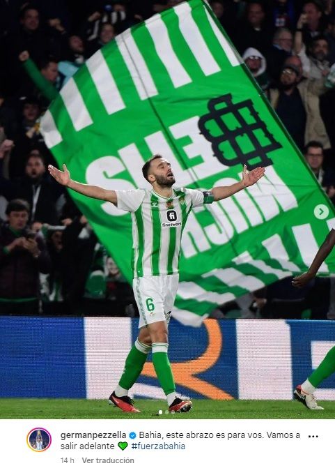 “Bahía, este abrazo es para vos. Vamos a salir adelante 💚 #fuerzabahia”, publicó en su cuenta de Instagram.