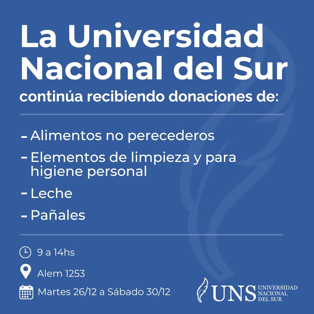 Cómo continúa la campaña solidaria que coordina la UNS y que están necesitando