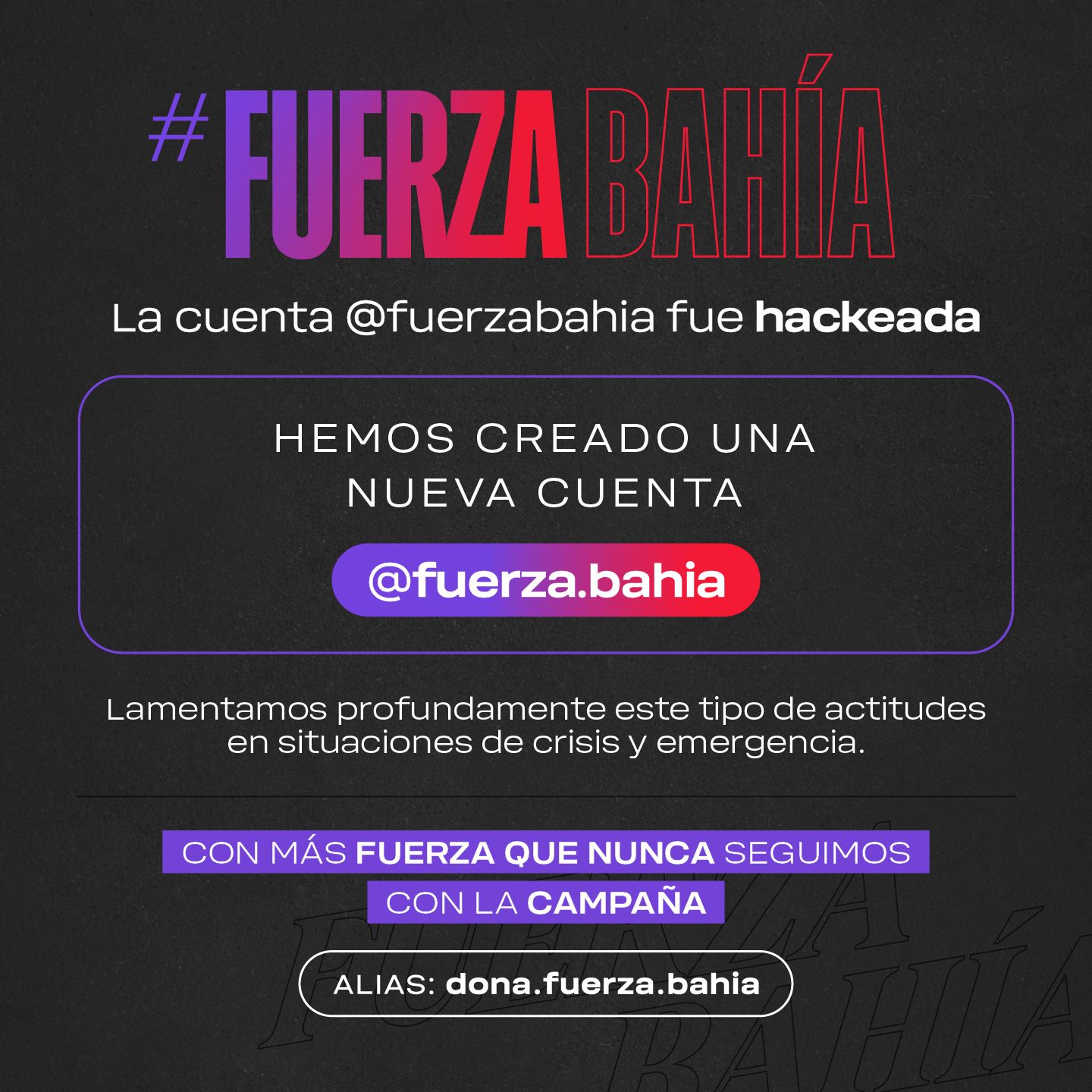 En ese contexto, la cuenta oficial de Instagram @fuerzabahia fue hacekada, por lo que fue reemplazada por @fuerza.bahia.