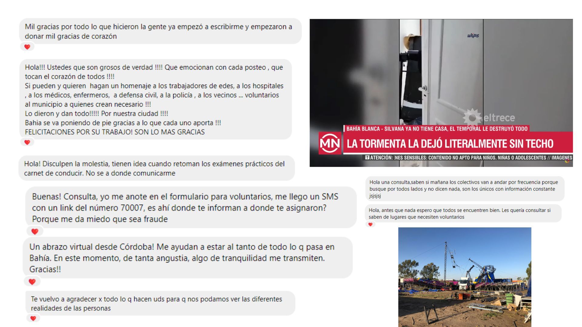 El lunes mostramos algo de lo que se veía si recorrías la ciudad. Vimos destrozos, pero también vecinos limpiando, locales abiertos sólo para prestar electricidad, donaciones en todas las instituciones. Seguíamos alineados a nuestras verticales: brindar información que construya.