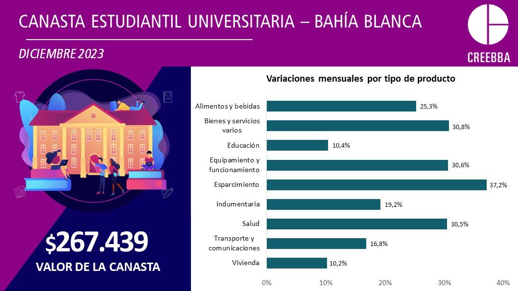 El relevamiento de la Canasta Estudiantil Universitaria del último mes del año arrojó una suba del 19,7 % respecto a noviembre.