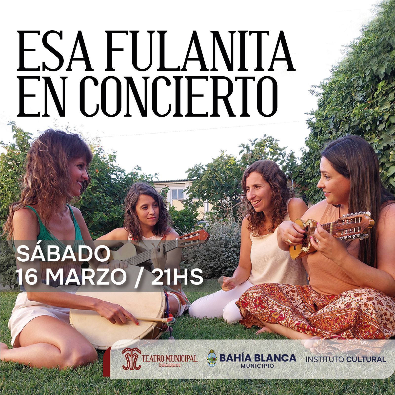 El sábado 16 de marzo a las 21 horas en el Teatro Municipal se presentará Esa Fulanita, cuarteto vocal instrumental femenino de nuestra ciudad dedicado al cancionero popular argentino y latinoamericano, integrado por María José Fernández Rost, Mariana Ortiz, Camila Eleno y Paula Biagioli.