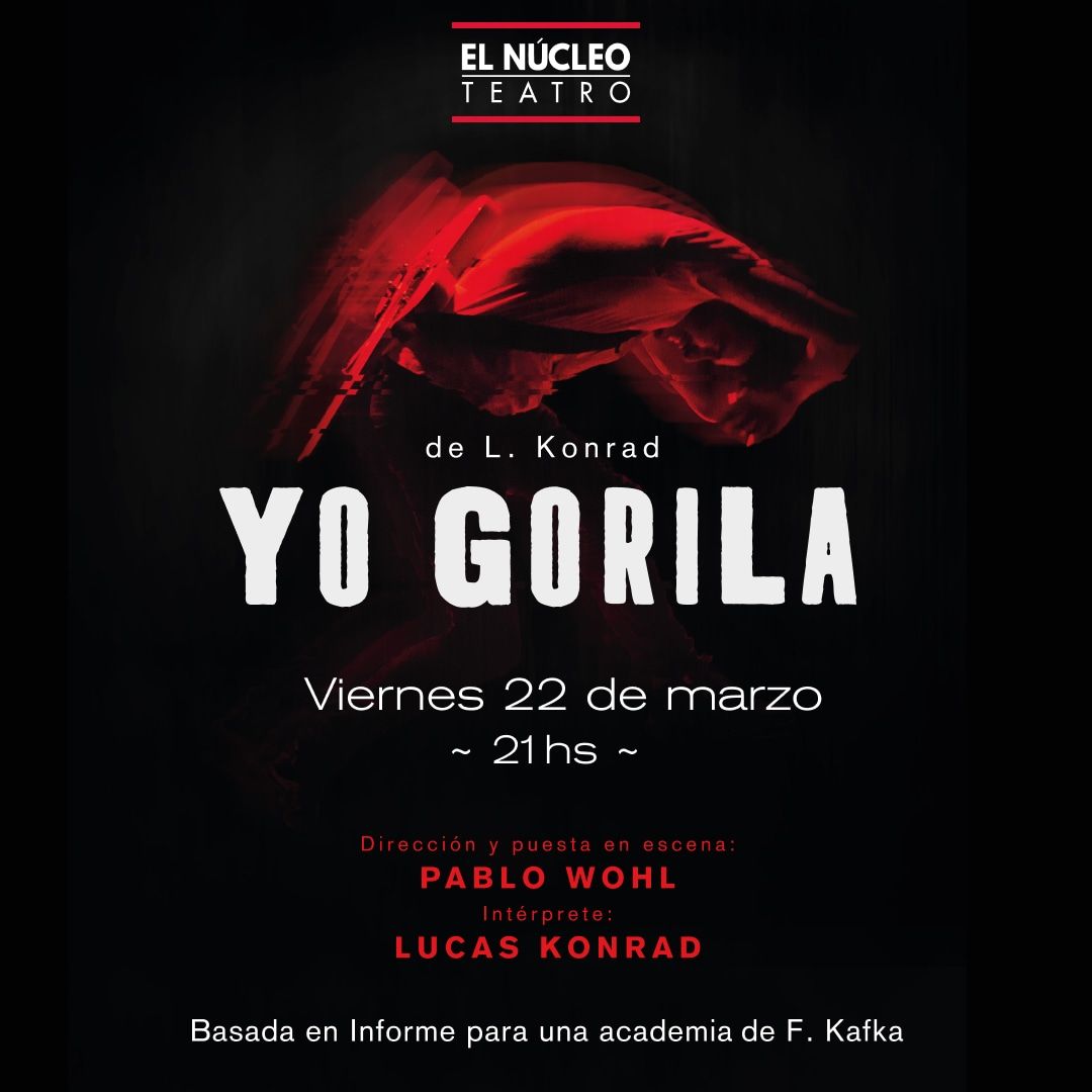 Yo Gorila está basada en “Informe para una academia” de Franz Kafka, y es un unipersonal en formato performático.