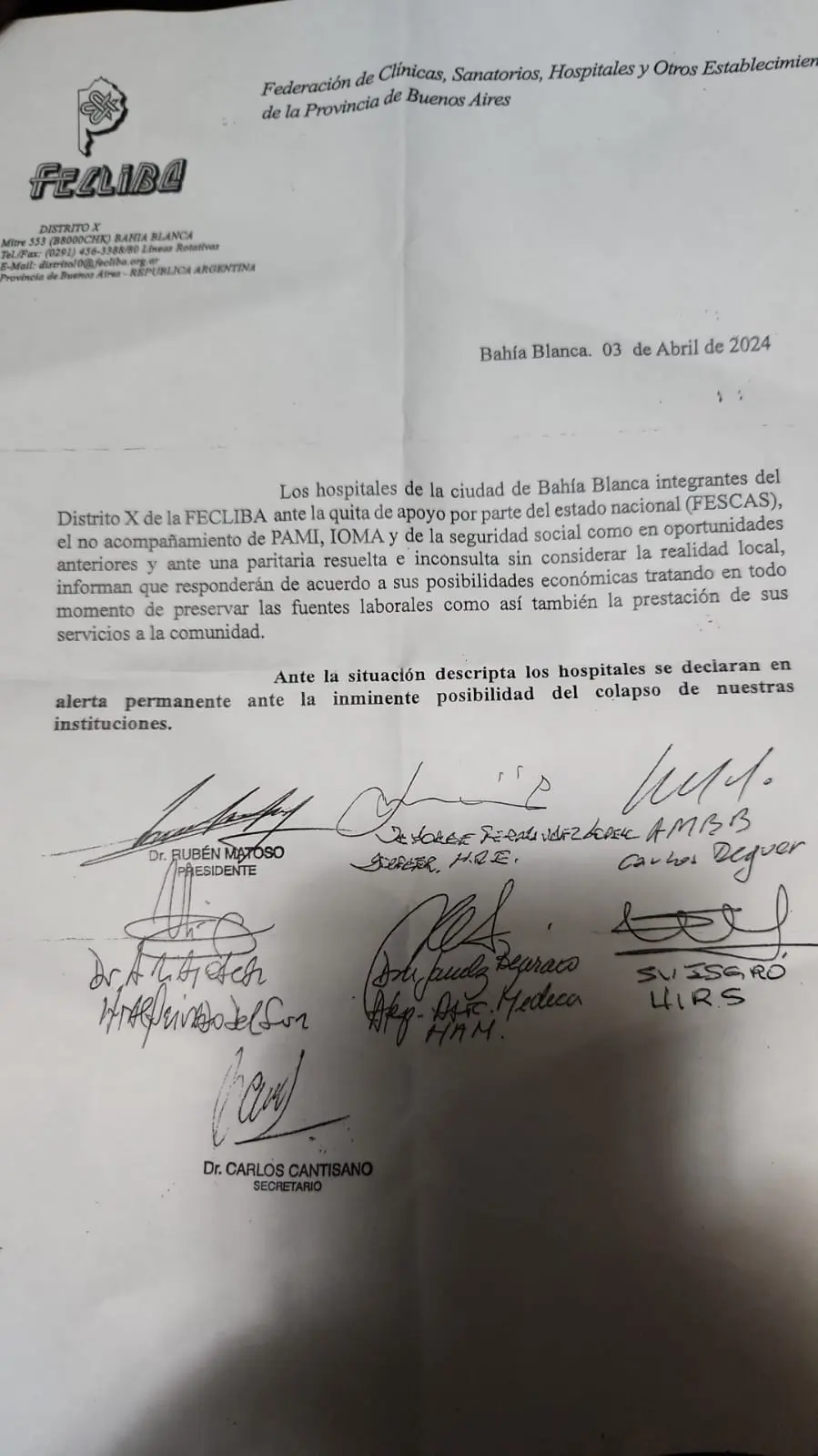 El documento fue en respuesta al gremio de Sanidad al considerar que se trató de una paritaria “resuelta e inconsulta sin considerar la realidad local”, y en el que confirmaron que abonarán los salarios en base a sus posibilidades económicas tratando de mantener los puestos de trabajo.