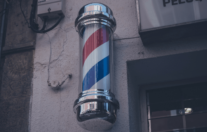 Por qué las barberías y peluquerías tienen un cilindro rojo, blanco y azul en la entrada