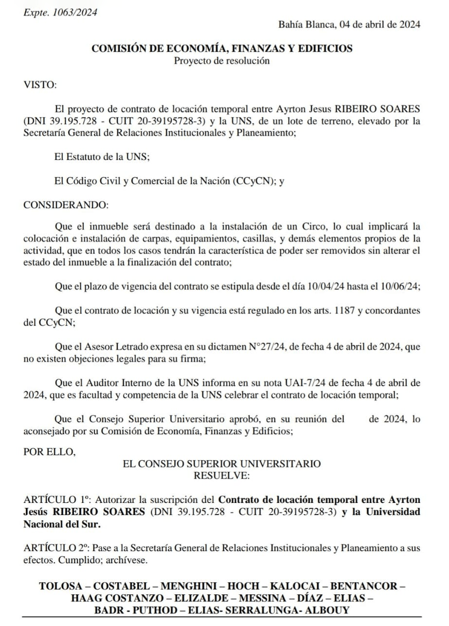 La parcela pertenece a la Universidad del Sur, que autorizó su instalación a través del Consejo Superior hasta el 10 de junio.