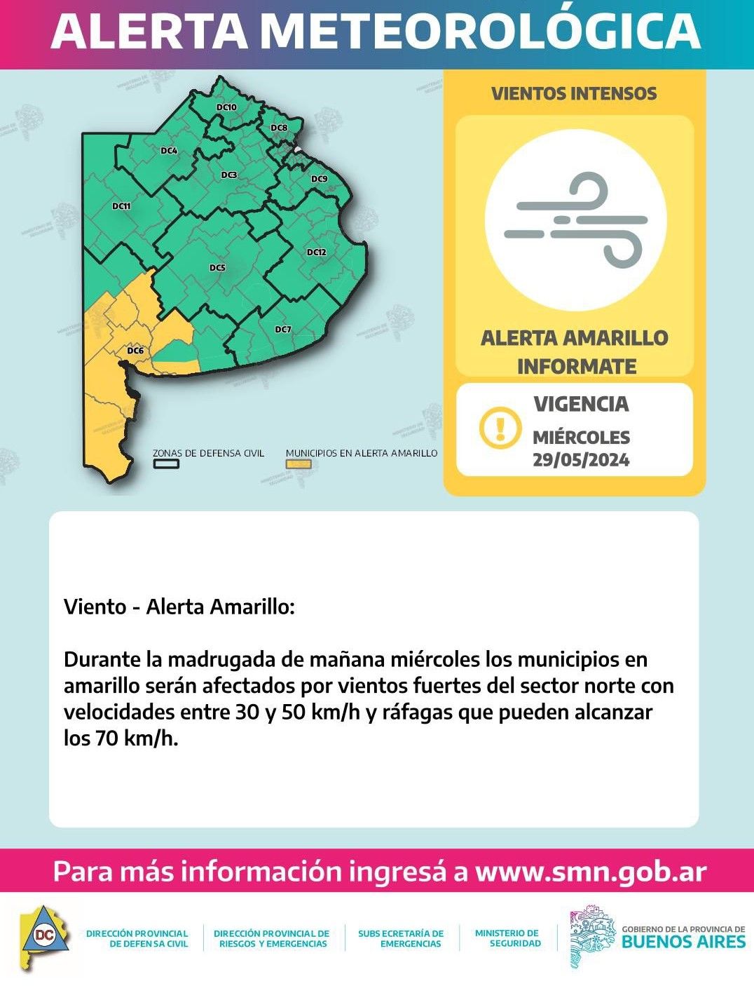 El Servicio Meteorológico Nacional lanzó por ello un alerta amarilla advirtiendo ráfagas que podían alcanzar los 70 kilómetros por hora.