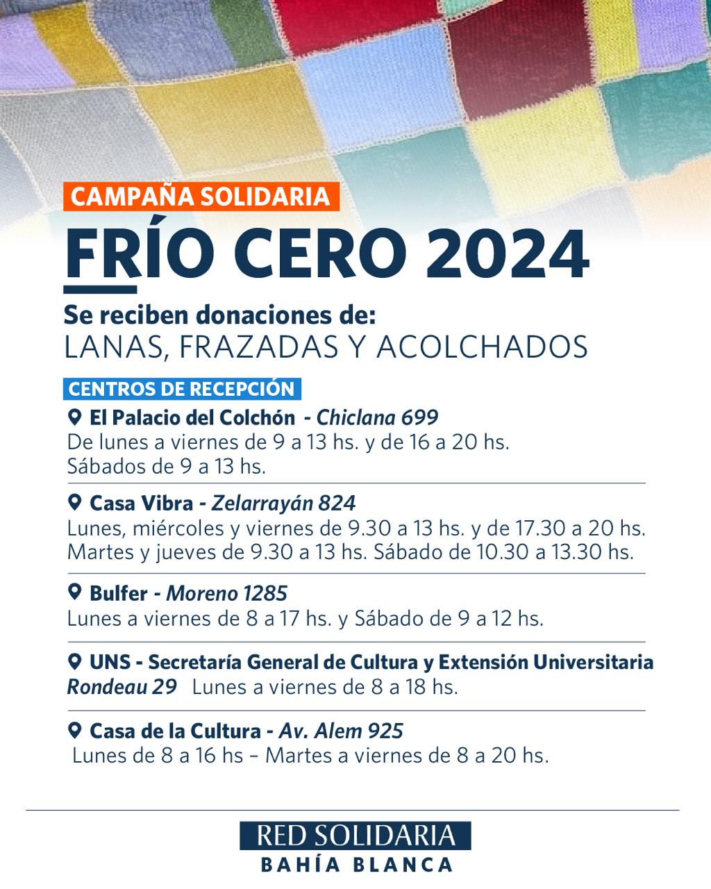 Red Solidaria Bahía Blanca lanzó la campaña Frío Cero que consiste en la recolección de frazadas, mantas y lana para destinar a los que más necesitan.