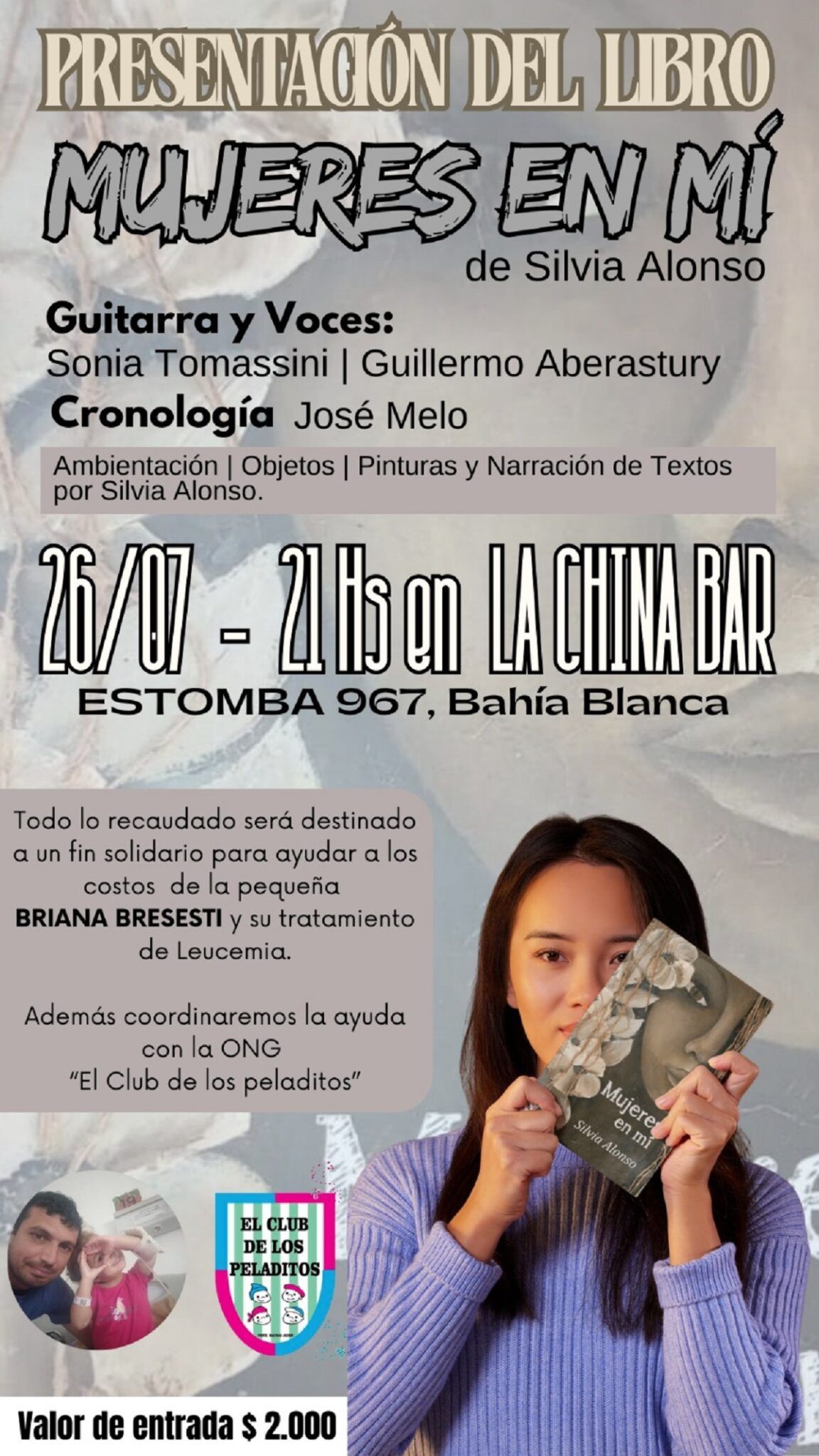Este va a ser el 26 de julio a las 21 horas en La China Bar, Estomba 967. Allí va a presentar su libro “Mujeres en mí” la bahiense Silvia Alonso.