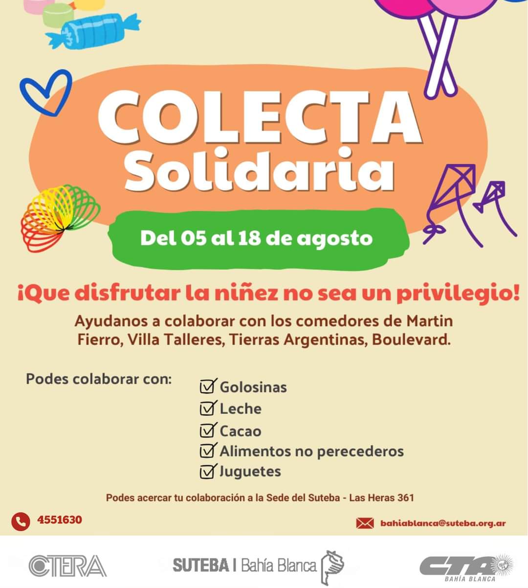 Solicitamos golosinas, leche, cacao, alimentos no perecederos y juguetes.