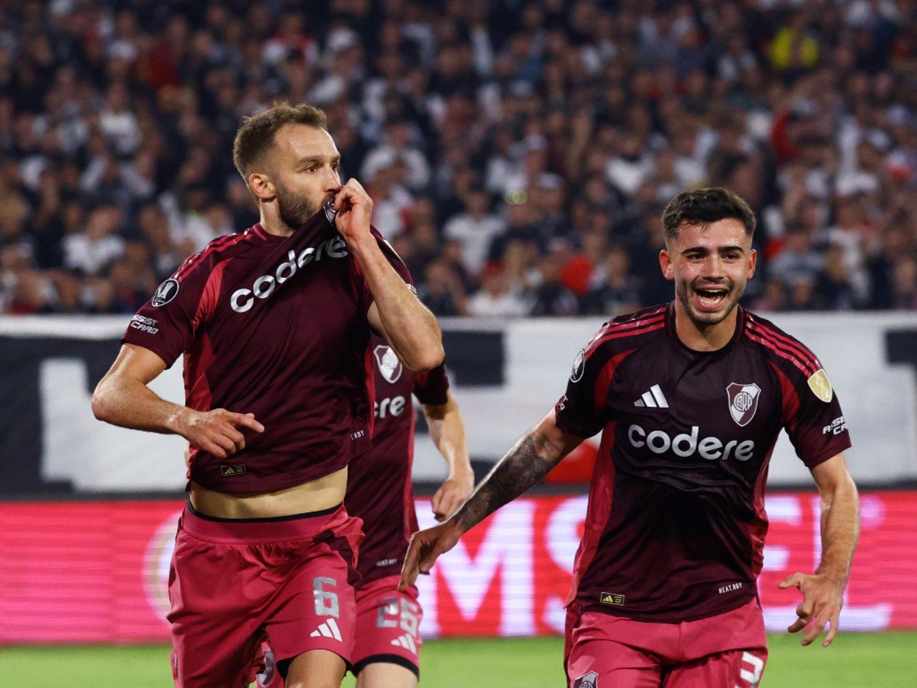 Germán Pezzella anotó su primer gol tras el regreso a River.