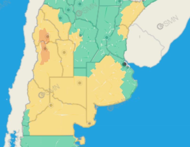 “El área será afectada por tormentas, pudiendo ser algunas localmente fuertes, acompañadas por ocasional caída de granizo, intensa actividad eléctrica, abundante caída de agua en cortos períodos y fundamentalmente ráfagas muy intensas”, indica el reporte.