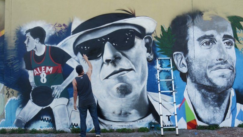 Una de las imágenes es la de Manu Ginóbili, justo en una esquina por la que pasó gran parte de su niñez y adolescencia, a metros de su casa y su club.