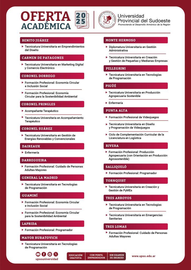 La oferta académica se puede ver en upso.edu.ar/oferta-academica.