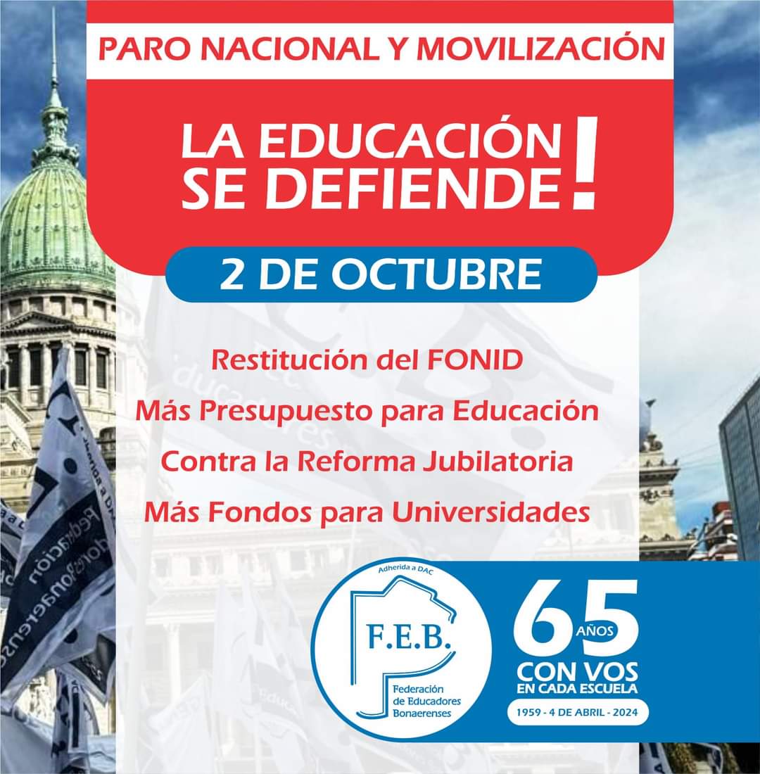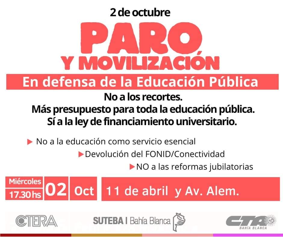Este miércoles, 2 de octubre, se va a resentir el dictado de clases en instituciones de régimen público de Bahía.