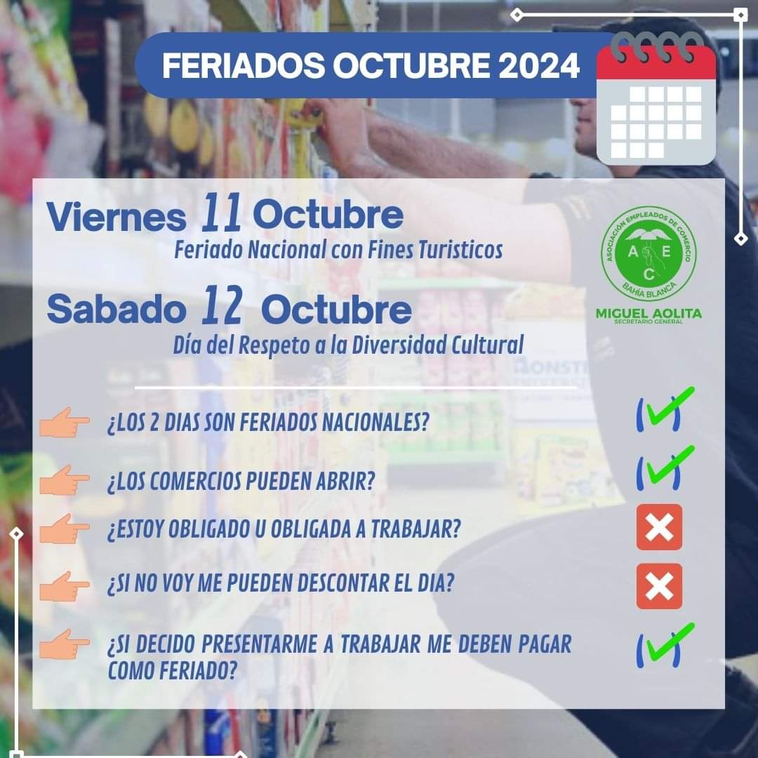 Teniendo en cuenta que el viernes 11 es puente y el sábado 12 feriado por Día del Respeto por la Diversidad Cultural, se realizó la habitual consulta y la mayoría anunció que permanecerán abiertos ambos días.