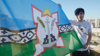 Sobre la línea del horizonte, la guarda pampa simboliza los primeros asentamientos de los pueblos originarios en nuestra zona, así como también la cultura de los mismos presentes hasta nuestros días.