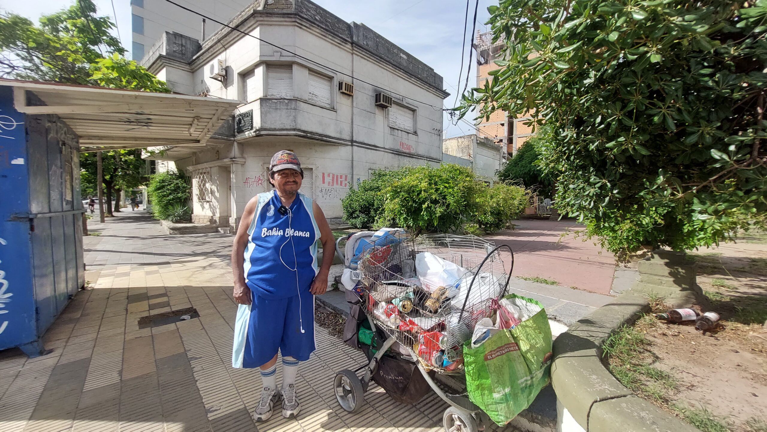 Sin saber leer ni escribir y prácticamente sin entorno familiar y amigos, es ayudante de albañil, arregla patios y por la tarde recorre Bahía buscando latas para vender el aluminio.