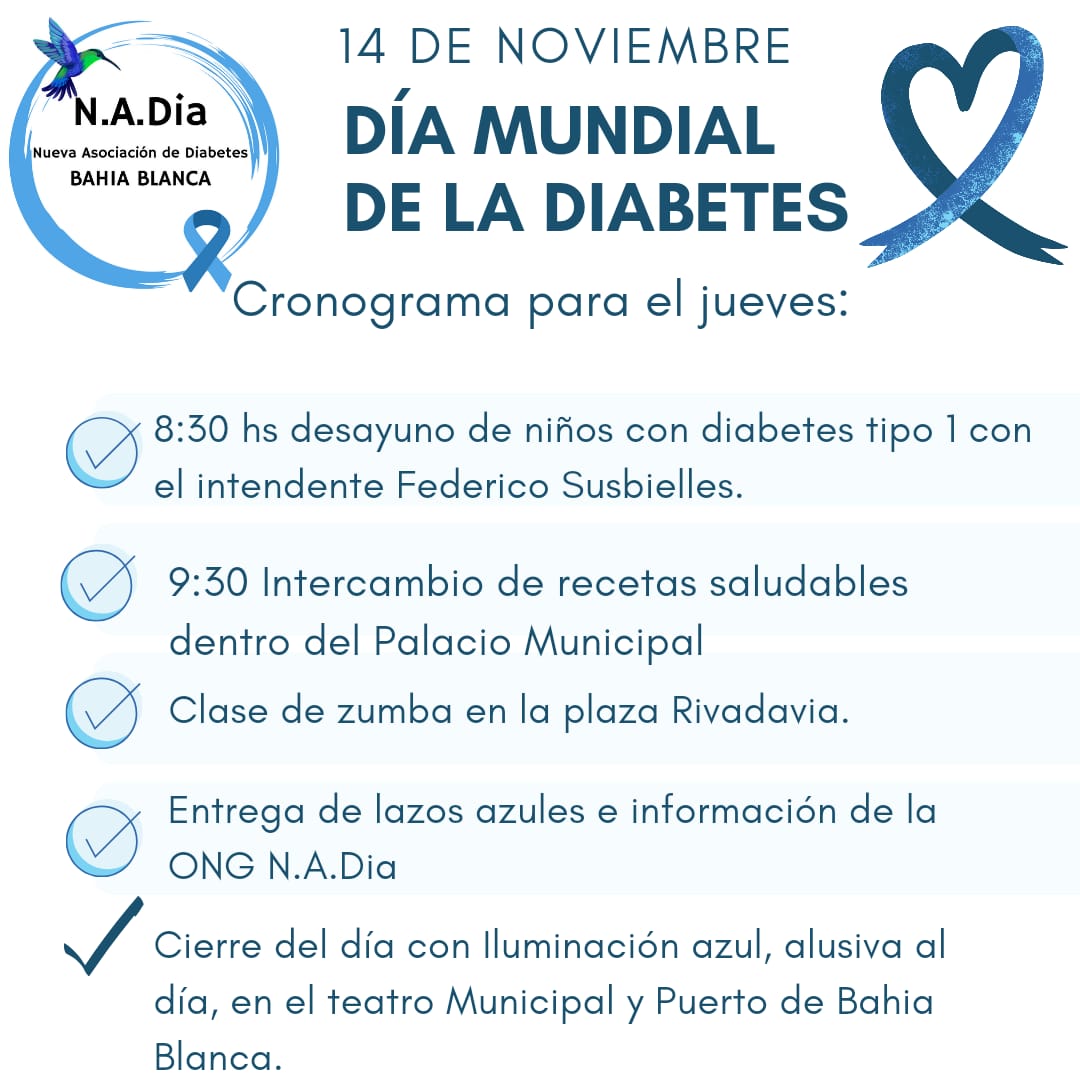 Este jueves, en el marco del Día Mundial de la Diabetes, vamos a hacer actividades en la Plaza Rivadavia.