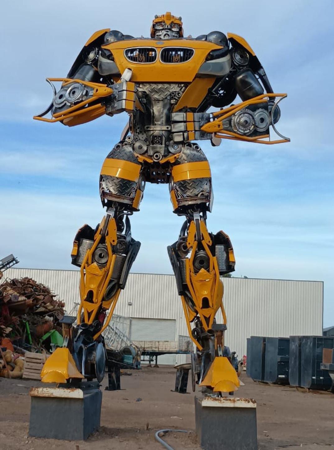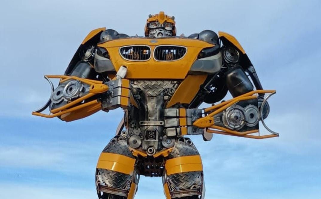 Un Transformer en Bahía: hicieron una escultura con un BMW desguazado
