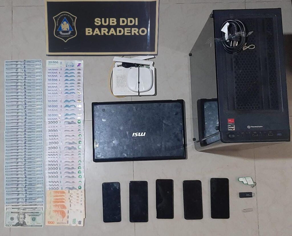Además se logró el secuestro de dinero en efectivo, aproximadamente el equivalente a 30 millones de pesos, computadoras, teléfonos celulares, tarjetas de memoria, pendrives y armas de fuego.