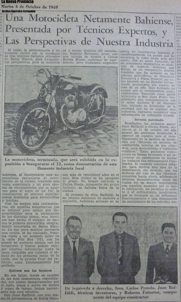 Sí, en 1949 se presentó la R.P.F, una creación bahiense de los italianos Juan Raffaldi, Carlo Preda y Roberto Fattorini, que le pusieron de nombre las iniciales de sus apellidos.