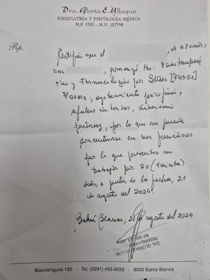 Tres psiquiatras bahienses fueron denunciados por otorgar certificados de salud mental a trabajadores, prácticamente sin atención, a fin de obtener licencias médicas.