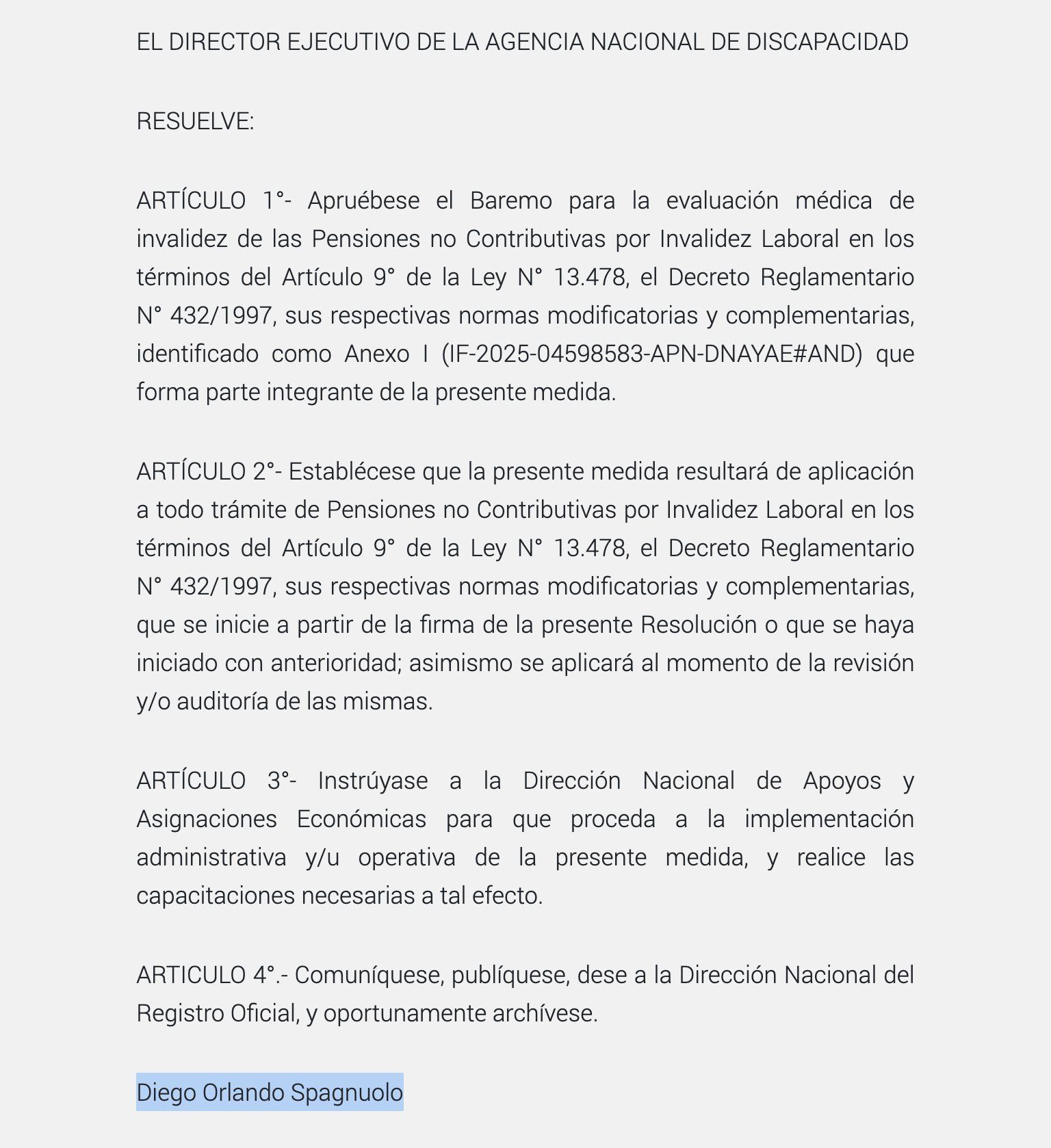 Incluso, el propio Spagnuolo indicó que los responsables fueron desvinculados del organismo, pero la resolución llevaba su firma.