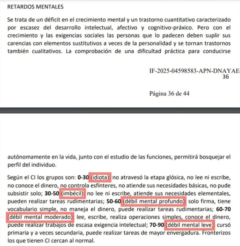 Horas más tarde, desde la Agencia Nacional de Discapacidad emitieron un comunicado indicando que se trató de “un error” y que se trató de “un anexo con términos que, históricamente, se han utilizado en la medicina psiquiátrica para describir grados profundos de déficit intelectual, pero que, en la actualidad, han sido discontinuados”.