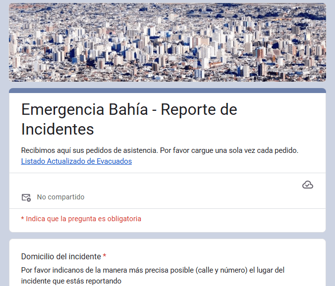 Las familias o personas que necesiten ayuda, tienen que anotarse o anotarlas en emergenciabahia.com.