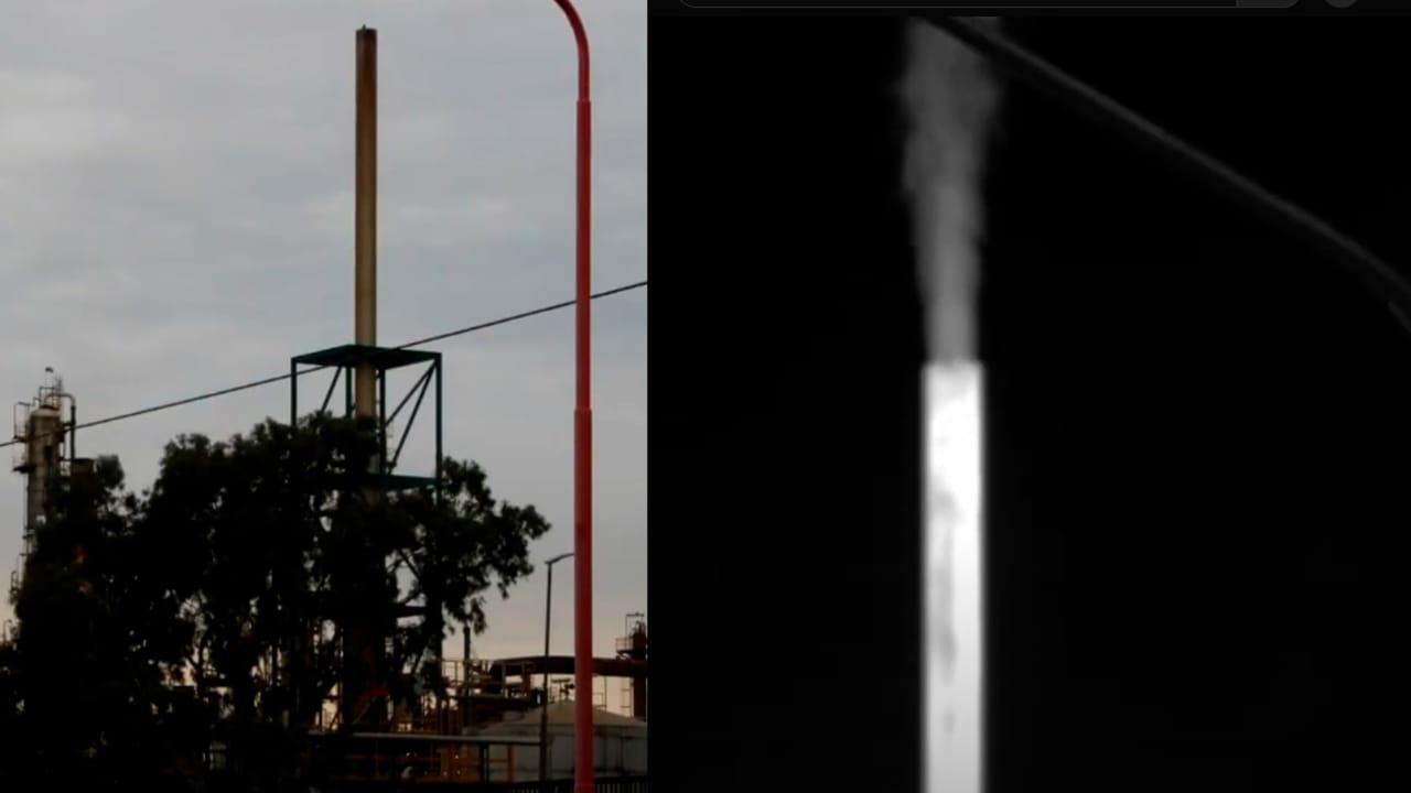 Una de las imágenes más impactantes en Bahía fue la captada en la Termoeléctrica, donde no se ve nada saliendo de la chimenea, pero a través de la cámara sí se capta que hay combustión, que convierte los gases de hidrocarburos en dióxido de carbono. Y al fin de la quema, sale una importante cantidad de humo que se esparce al aire para arriba, lo que indica que la combustión es incompleta, y donde predominan el metano y otros compuestos orgánicos volátiles.