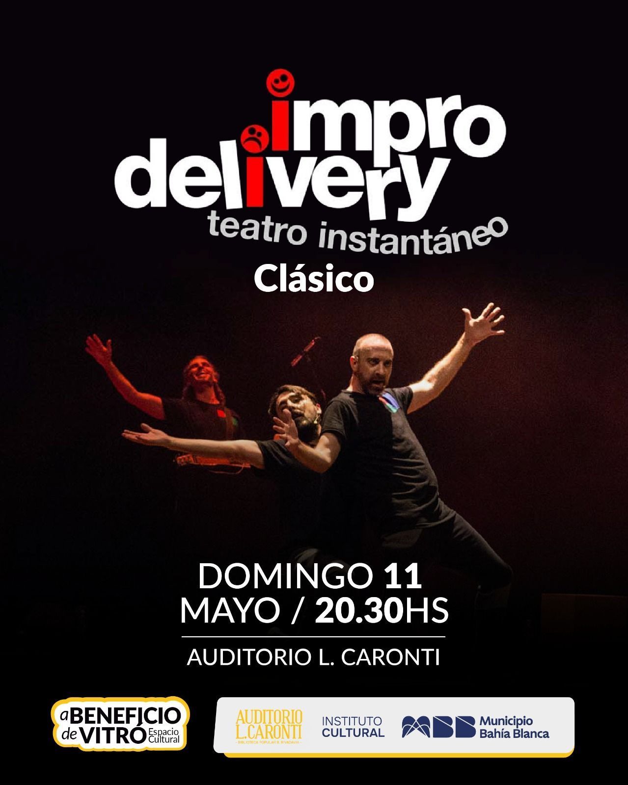 Impro Delivery Teatro Instantáneo presenta “Clásico”, un espectáculo de improvisación teatral donde el público propone títulos y situaciones que los artistas interpretan de manera inmediata en escena.