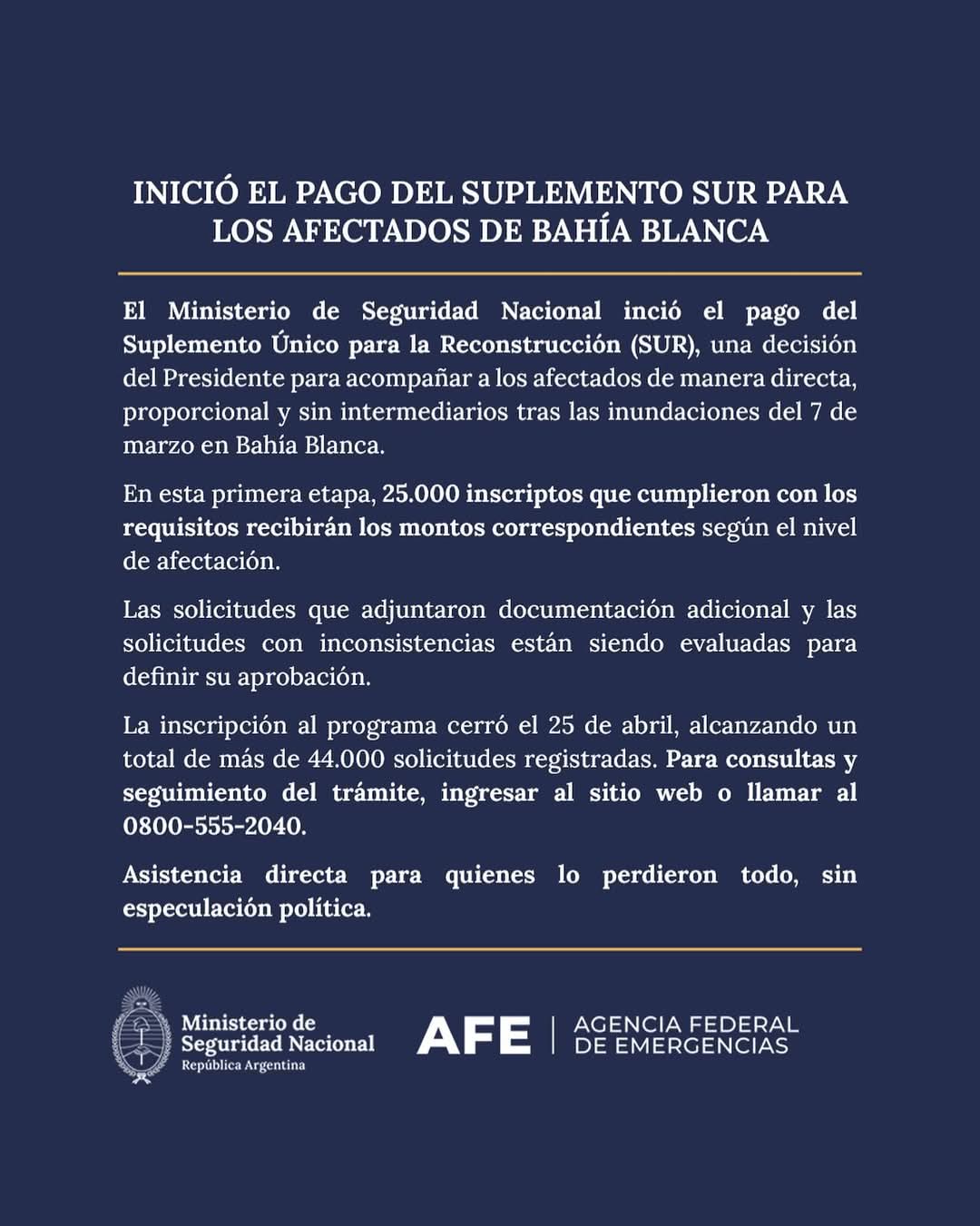 El subsecretario de Ayuda a la Emergencia, Santiago Hardie, confirmó que Nación empezó a pagar los subsidios no reembolsables a los damnificados por la inundación del 7 de marzo.