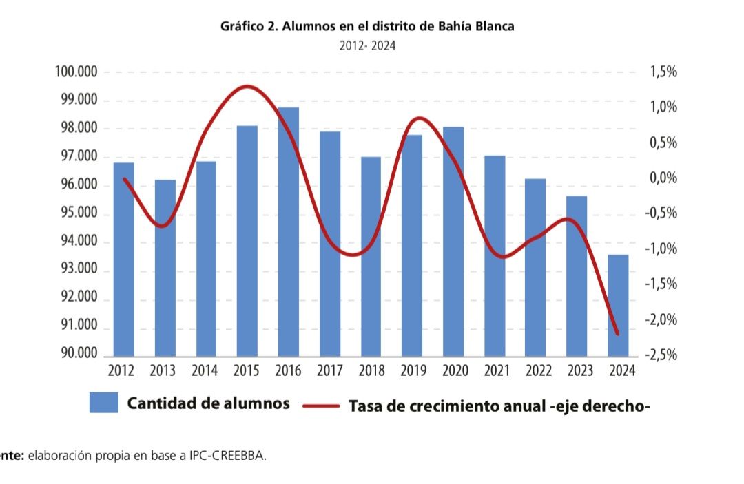 Durante 2024 volvió a bajar la cantidad de alumnos que asistieron a establecimientos educativos en Bahía.