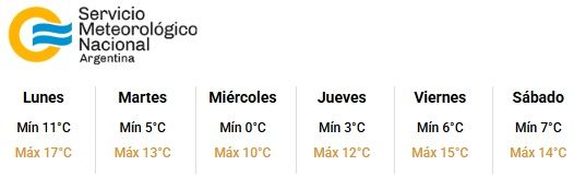 A su vez, las mínimas promedio hasta el viernes van a ser de 5º, y las máximas de 13º.