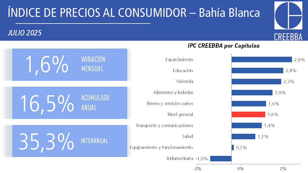 Para el Creebba, en el sexto mes del año también fue del 1,6 % y lleva 16,5 % en el 2025.